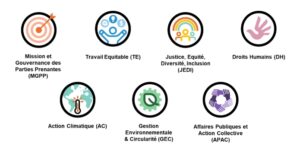 Le score minimal de 80 points, attendu au global sur l’ensemble des champs dans la version initiale pour prétendre au label, disparaît au profit d’exigences minimales obligatoires, structurées autour de sept thématiques d’impact :